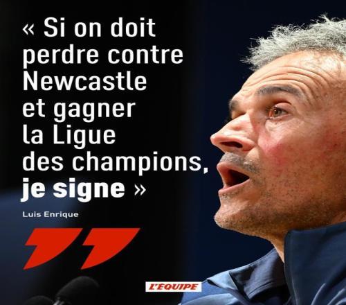 到了对阵纽卡的比赛之前,有记者问起之前巴黎对赛纽卡的疲软(2023年10月小组赛曾被纽卡1比4暴揍),恩里克又一次发出怪论:如果输给纽卡斯尔,之后征途国际 可以拿到欧冠,我宁愿输给纽卡斯尔。
