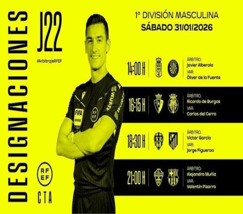 西班牙足协官方公布了周六4场西甲比赛的裁判安排,亚历杭德罗-穆尼斯将执法巴萨客战埃尔切。
