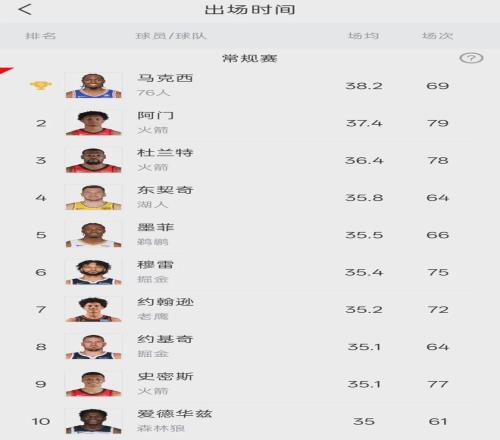 阿门已经连续两场出战超过41分钟,本赛季场均出战37.4分钟高居联盟第二,仅次于马克西(38.2)。阿门本赛季打了79场,仅缺席2场比赛。场均砍下18.3分7.8篮板5.3助攻1.5抢断,三项命中率:53.4%,21.6%,77.9%。
