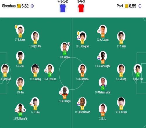 前卫:10-特谢拉(F)(88'30-谢鹏飞)、9-拉唐(F)、17-高天意(64'43-杨皓宇)
