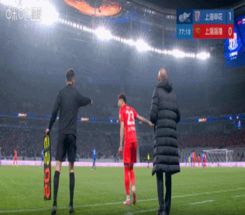 第55分钟,加布里埃尔带球推进时无对抗滑倒,捂着自己膝盖。海港随后将其换下,刘祝润替补登场。