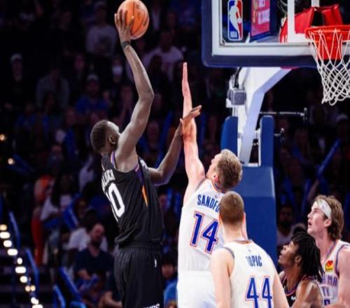 北京时间4月13日,在NBA常规赛收官战中,菲尼克斯太阳客场135-103大胜俄克拉荷马雷霆。