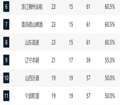 辽宁排在第九不上不下,现在他们第一轮的对手还很难确定,毕竟前面的球队战绩还非常胶着。