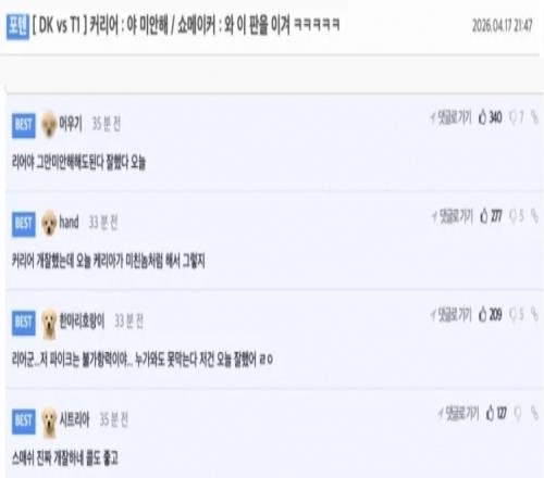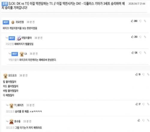 体育播报4月17日宣 2026LCK常规赛DK以2比1战胜T1后,韩国FMKOREA论坛网友对此展开热议。