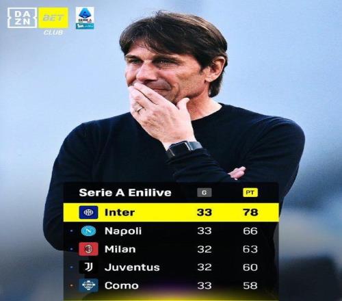 意甲悬念终结卫冕冠军2场不胜送礼国米12分领跑下轮或夺第21冠
