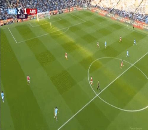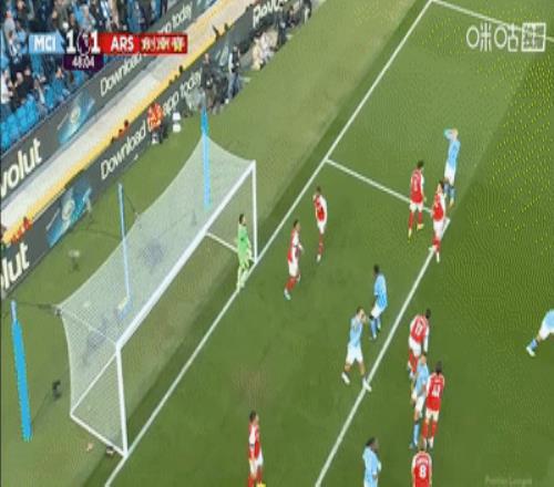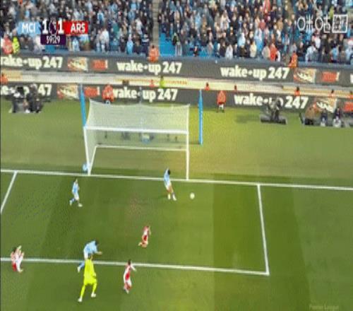 第72分钟,阿森纳前场任意球吊入禁区,加布里埃尔头球攻门,皮球砸在奥莱利身上折射后砸在门柱上,曼城逃过一劫。