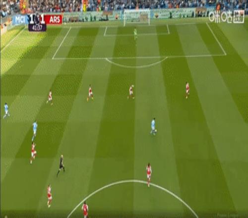 仅仅两分钟之后,曼城后场手抛边线球,多纳鲁马出现超巨失误,停球太大被哈弗茨逼抢之下,开大脚被哈弗茨挡进球门,阿森纳迅速将比分扳平。