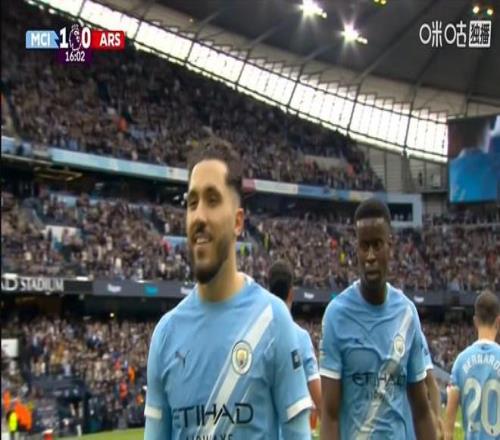 半场结束,曼城暂时主场1-1战平阿森纳。
