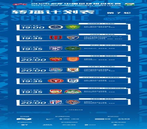 中超第七轮对阵。