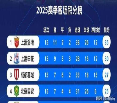 2025赛季,海港队中超夺冠,依靠强劲的客场得分能力。