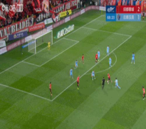 第80分钟,蓉城战术角球开出,韦世豪门前头球顶偏。↓