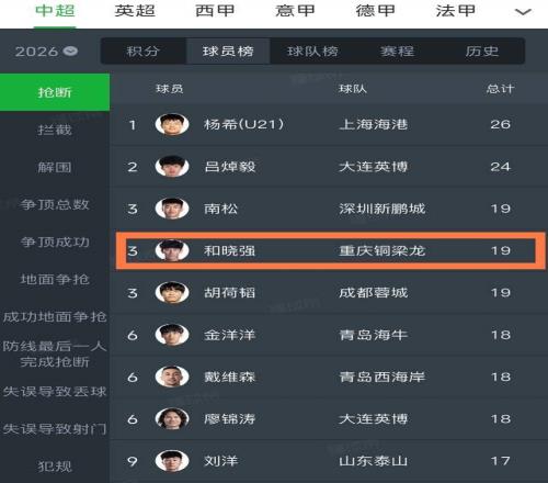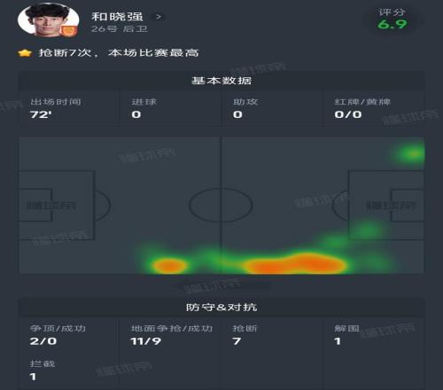 第一个,和晓强今天被分配的任务,就是对位海港本赛季最大亮点杨希,结果和晓强贡献了全场最高的7次抢断,个人在抢断榜上也高居中超前三位,而中超真正的抢断王杨希也是新赛季表现唯一失常的比赛,丢失球权22次,全场最高,完全被和晓强防得没脾气,让太多人记住了和晓强的名字。