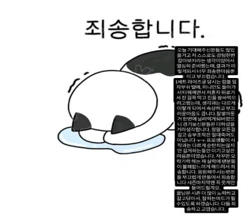 因为我频繁失误,让粉丝们感到不舒服,真的很抱歉。让支持我的人感到丢脸,我也非常抱歉。接下来我一定会用表现来回报大家。