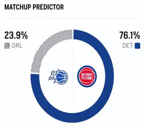 赛前,美媒ESPN对本场比赛进行了胜率预测,魔术队胜率还是仅有可怜的23.9% ,活塞胜率则依旧高达76.1% ,看起来都看好他们能够扳回一局。