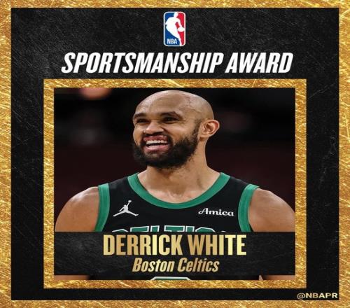 官方:凯尔特人后卫德里克怀特获得本赛季体育道德风尚奖