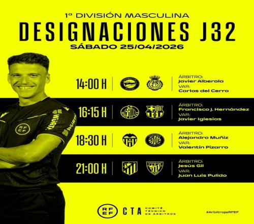 体育播报4月24日宣 本周末,西甲将进行第32轮较量,西班牙足协官方公布了本轮比赛部分场次裁判安排,弗兰西斯科·埃尔南德斯主裁巴萨客战赫塔费。