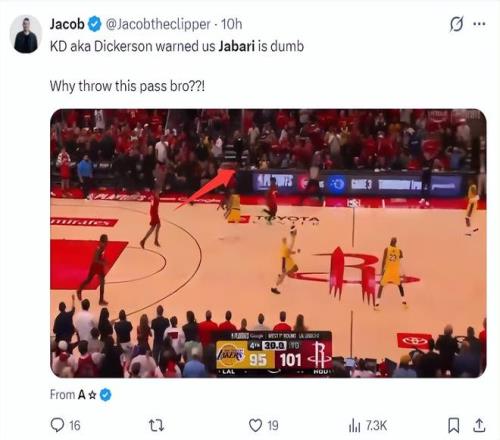 火箭鏖战加时108-112惜败湖人,大比分0-3落后。这场比赛火箭一度落后15分在末节完成反超,终场前40秒申京抢断詹姆斯暴扣后已经领先6分,终场前27秒小贾拿着球权火箭还领先6分,可在这样的优势下火箭出现了两个极其低级的失误帮助湖人一波6-0绝平。