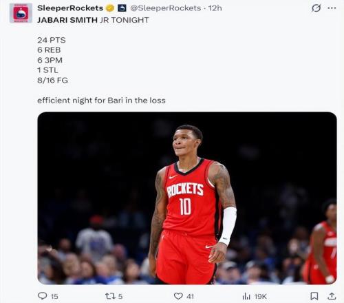 如果没有决胜时刻的拉胯,史密斯全场比赛44分钟,16中8,三分10中6,罚球2中2,拿到24分6篮板1助攻1抢断2失误,命中率50%,三分命中率60%实际上还算不错。