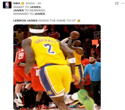 末节詹姆斯出现了两个很低级的失误,但他却也贡献了末节最极致的1防1攻,他先是捅掉了谢泼德的球,随后面对申京+小贾完成了绝平三分球帮助湖人拖入加时赛。
