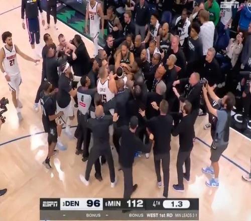 最终裁判连出两张驱逐,约基奇、兰德尔双双被罚出场,本场比赛才算正式结束。本场之后,系列赛大比分来到3-1,森林狼率先拿到晋级赛点。