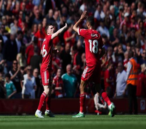 2025-26赛季英超第34轮战罢,由懂球帝联合咪咕体育评选的本轮英超最佳进球出炉。在利物浦3-1战胜水晶宫的比赛中,利物浦由守转攻快速反击,罗伯逊一击命中,这粒进球被投票评选为本轮英超的最佳进球!