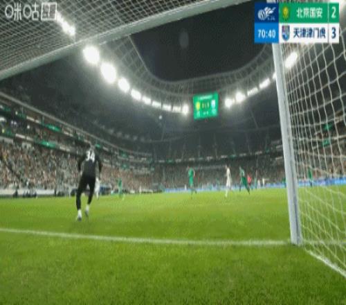 第70分钟,在国安连进两球扳平比分后,哈达斯将球传到后点,李磊冒顶,后点的基莱斯凌空一推将球打进,为津门虎再次超出比分!