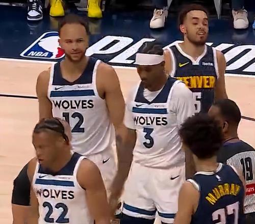 末节开场森林狼又一个失误,李凯尔手肘开路吃进攻犯规,麦丹与穆雷、瓦兰都险些爆发冲突,瓦兰与兰德尔又缠斗倒地,主场球迷的情绪被点燃了在骂裁判太烂了。瓦兰持球突破造犯规两罚一中,双方对抗太大每一个回合都充斥着犯规,麦丹被换下全场狂嘘。约基奇登场被打一波6-0阿德尔曼暂停,约基奇两罚全中,布劳恩关键三分,里德失误,掘金一波38秒7-0再度拉开分差,进入最后2分55秒森林狼换下主力放弃比赛。