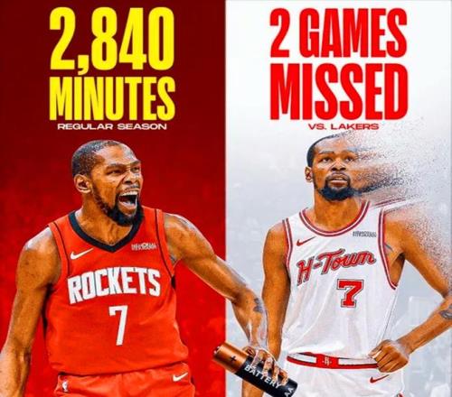 同时杜兰特季后赛频繁受伤火箭队也赖不到别人,常规赛火箭教练组硬是让37岁的杜兰特强度拉满,一共出战78场比赛,缺席的4场比赛中两场是私人原因,一场是因为最后一战轮休,仅一场因伤缺席,一共苦战2840分钟高居联盟第二,仅次于队友阿门早已透支。