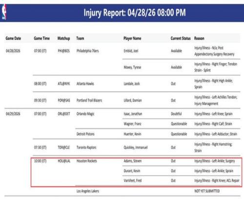 而伤病显然是决定这一轮系列赛走势的关键,尤其是对于陷入落后的火箭队,因此在关键G5开始前火箭队也更新伤病情况。