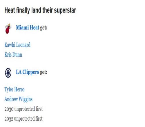 热火得到:科怀-莱昂纳德、克里斯-邓恩