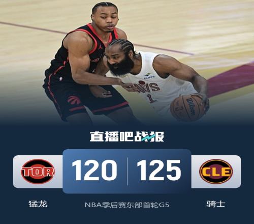 比赛开始,猛龙率先发力,巴恩斯攻防两端建功,沃尔特独中2记三分帮助球队获得两位数优势,骑士回敬12-2的攻击波扳平比分,哈登和米切尔相继三分命中带队反超,次节猛龙打出8-0的攻击波夺回领先,泰森三分稳住局势,英格拉姆伤退,此后骑士连续失误,猛龙利用反击不断扩大领先,沃尔特连续三分命中,半场战罢骑士67-74落后猛龙。易边再战,猛龙稳扎稳打占据主动,骑士8-0迫近比分,但随后连续失误被对手反击再度拉开分差,莫布里挺身而出连中3记三分,施罗德里突外投连得7分,骑士火力全开,攻防两端发力不断扩大领先,猛龙苦苦追赶无果。最终,骑士125-120力克猛龙,总比分3-2领先。