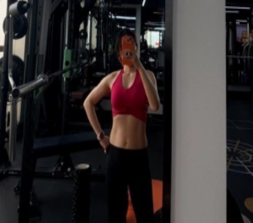 主持人余霜分享运动照片:今天也练了!练背!!嘻嘻!