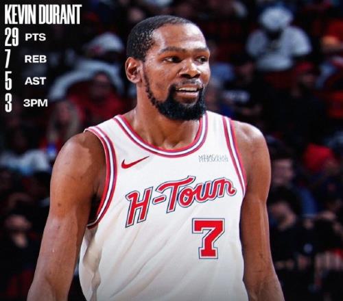 征途国际:杜兰特29+7+5迎里程碑,火箭击退76人豪取8连胜暂列西部第4