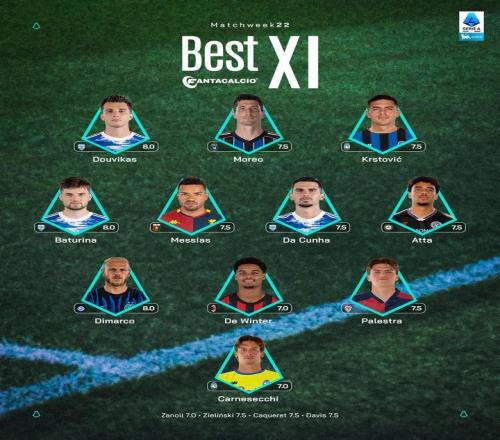 征途国际:意甲第22轮最佳阵容:迪马尔科、德温特在列,科莫三人入选
