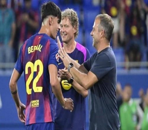 18岁296天,贝尔纳尔是欧冠淘汰赛进球第三年轻的巴萨球员