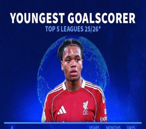 北京时间1月28日,德转统计出了本赛季至今欧洲五大联赛俱乐部最年轻的10位进球球员,利物浦的新星恩古莫哈以17...