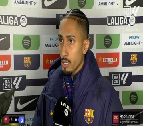 帮助巴萨在联赛主场3-0完胜奥维耶多后,巴西前锋拉菲尼亚接受了DAZN的采访。