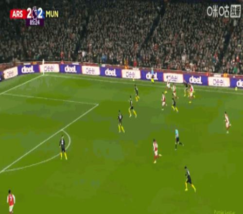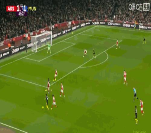 第81分钟,萨卡传中,皮球砸到哲凯赖什肩膀高出横梁