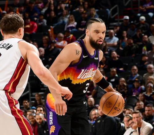 太阳主场迎战热火,太阳少了布克、杰伦格林,热火少了希罗、韦尔、米切尔,上半场比赛热火优势明显,半场战罢领先10分,第三节太阳追回5分,第四节热火再次占据上风,最终热火以9分优势击败太阳。阿德巴约16中6得到22分7板2断,哈克斯11中8得到20分5板6助,太阳方面狄龙23中11得到26分5板2助,阿伦18中4得到18分6板3助。