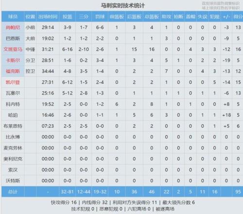 四节比分(鹈鹕在前):25-28、31-19、26-21、22-27。第四节马刺轰出一波24-5,一度完成反超。但鹈鹕还了一波13-0,直接带走比赛胜利。福克斯8中4得到12分7助4失误,罚球4中1;卡斯尔投篮6中1仅得5分4板5助2失误。