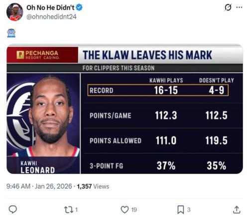 如果说哈登是兜底的基本盘,那么小卡则是决定快船队上限那个人,并且他再次用行动证明,只要健康登场自己就是联盟最好的球员之一。