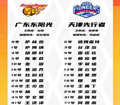 广东新科全明星总票王徐杰缺席,广东还缺少崔永熙与麦考尔,天津本土核心林庭谦也缺席。