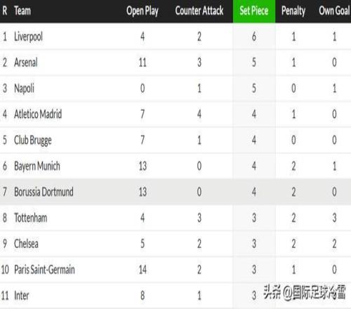 不止看联赛,也看欧冠表现的话,多特蒙德前7轮通过角球、定位球攻入4球,是欧冠并列第四多,比通过定位球打入3球的国米更多。