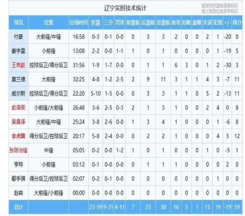 本场比赛最引人注目的数据出现在第四节,辽宁队在这一节全队仅得到4分,根据赛后统计,这是辽宁队史的单节最低得分,全场比赛,辽宁队运动战命中率不足35%,罚球线上11次出手仅命中4球。