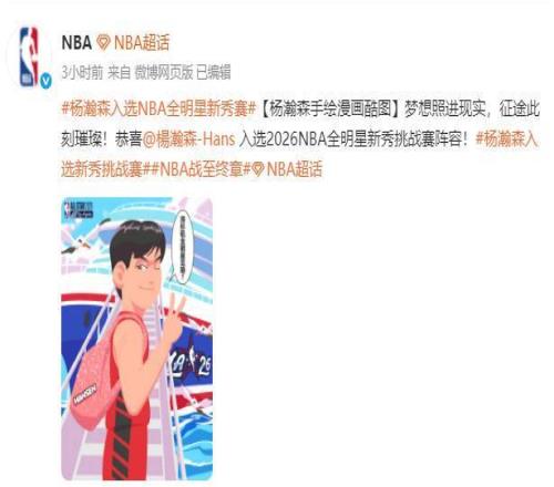 NBA官方和波特兰开拓者也发文祝贺杨瀚森入选NBA全明星新秀赛。