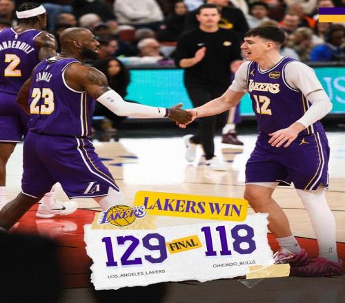 道苏姆抛投得分,东契奇2罚1中。詹姆斯、吉迪各有2罚全中,东契奇远投不进,吉迪上篮得手,东契奇助攻拉拉维亚在禁区得分。武切维奇2罚全中,斯马特2罚不中,奥科罗远投打铁,比赛时间走完。最终,湖人以129比118力擒公牛,得以斩获2连胜。