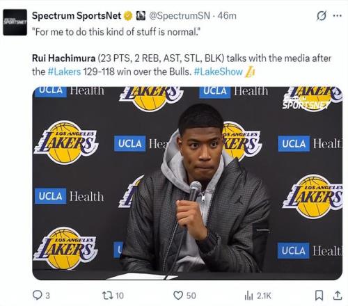 八村垒赛后接受采访,他盛赞了这个团队能看出他很不愿意离开LAL,他说道:我 要表扬我的教练,教练在会议上跟他们谈过了,让勒布朗、卢卡要多给队友球,他们也确实这样做了,他们总是接受教练的建议,所以征途国际 能赢球,每个人都可以触球,每个人都能积极参与进攻,这才是篮球该有的样子。