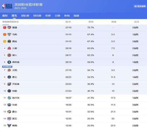 距离NBA25-26赛季全明星赛越来越近了,这也标志着NBA常规赛逐渐开始进入冲刺阶段,各队为了更好的排名和季后赛席位,开启了更为激烈的争夺,NBA排名也是因此在不断发生变化!西部球队战绩咬的很死,排名在随时发生变化,东部同样竞争激烈,现在咱们就一起看看NBA最新排名:西部4队抢第2,快船冲前8,东部3队打响第2追击战。