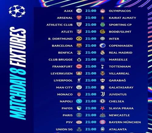 2025/26赛季欧冠小组赛最后一轮将于北京时间1月29日凌晨4点同时打响,总共18场比赛。随着赛程进入尾声,晋级形势逐渐明朗,但仍然有不少的悬念待解开。