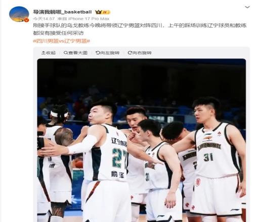 征途国际:刚接手球队的乌戈教练今晚将带领辽宁男篮对阵四川,上午的踩场训练辽宁球员和教练都没有接受任何采访。